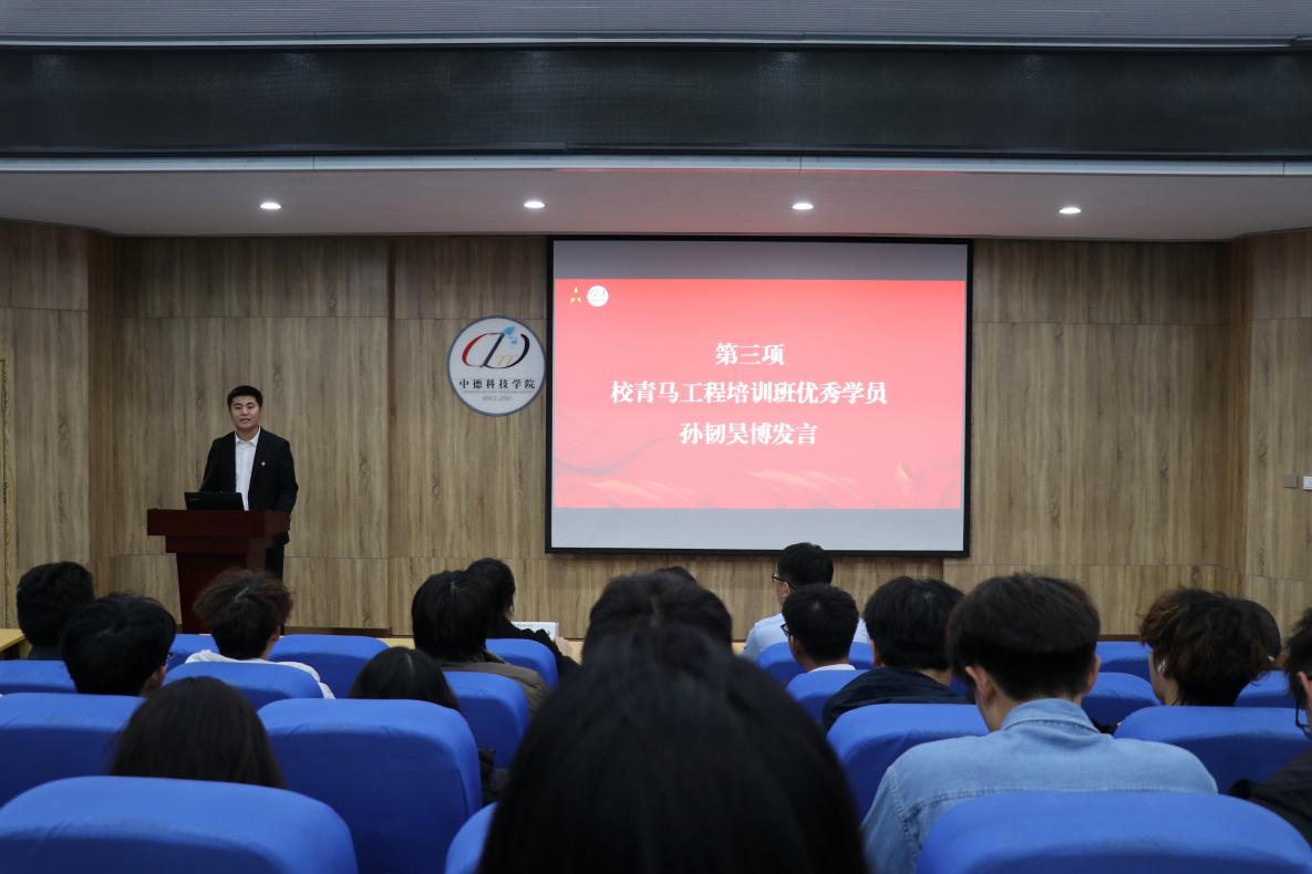 集团“青马工程培训班优秀学员”孙韧昊博结合自身参与公司“青马工程”培训班的经历进行了发言。他表示,青马学员肩负着理论引领、服务青年、助推发展的三重重要使命,这不仅是对青马学员的要求,更是时代赋予青年骨干的责任。孙韧昊博提出三点行动承诺:一是理论铸魂,争做专业笃行者。二是实践立身,争做群众实干家。三是团结聚力,争做院校联动排头兵。他倡议,全体学员要将马克思主义中国化理论成果融入实践,践行“知行合一”理念,以青春实干书写为中国式现代化挺膺担当的青春答卷,展现青年骨干的可靠形象。