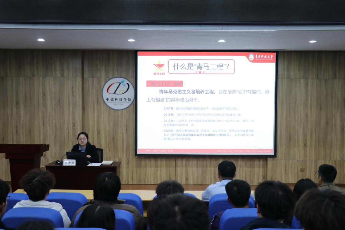 团委书记李怡然介绍了本学年青马工程培养实施方案,并作了题为“心怀报国志,做挺膺担当的奋斗者”的专题报告。她从青马工程的发展历程、基本原则及标识内涵等方面展开阐述,引导学员深刻体悟新时代青年的历史责任与时代使命,充分认识青年在不同历史时期所发挥的先锋作用,凸显其在民族复兴进程中的重要地位,进而强化青马学员的身份认同与示范引领意识。李怡然勉励参训学员,应以实际行动践行青春誓言,在民族复兴的伟大征程中勇于担当、积极作为。