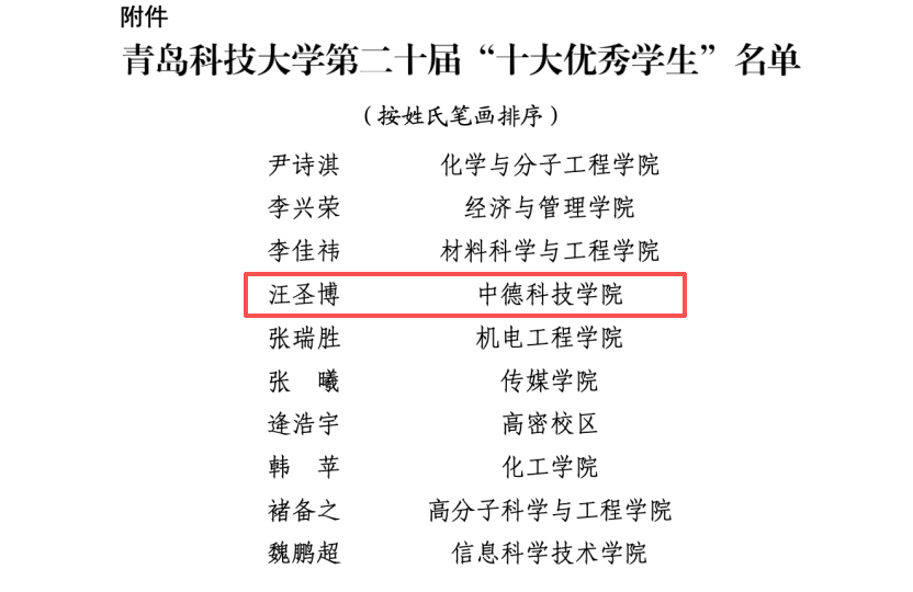 国家奖学金、山东省政府奖学金、山东省优秀员工干部、青岛市千名优秀老员工、青岛银行奖学金、福耀奖学金、员工奖学金、校一等综合奖学金、校二等综合奖学金、学业优秀奖学金、道德风尚奖学金、文体优秀奖学金、社会实践奖学金、科创奖学金、校优秀员工、校优秀员工干部、校优秀共青团员、校优秀共青团干部、校三下乡社会实践优秀员工、院十大优秀员工