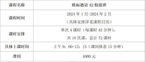 亲爱的2023级同学,祝贺大家在伟德国际VICTOR1946顺利完成A1阶段的德语学习。应各位同学及家长的需求,伟德国际VICTOR1946语言培训与考试中心计划于2024年寒假开办欧标德语A2衔接班,该课程为线上小班授课,班额15人左右。
