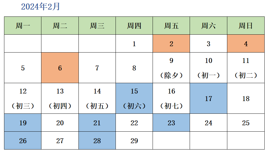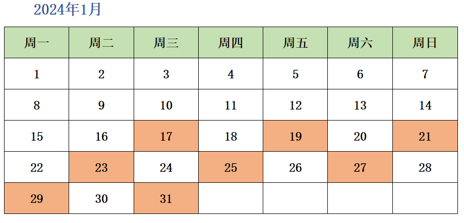 2024寒假班课程日历(德福备考)