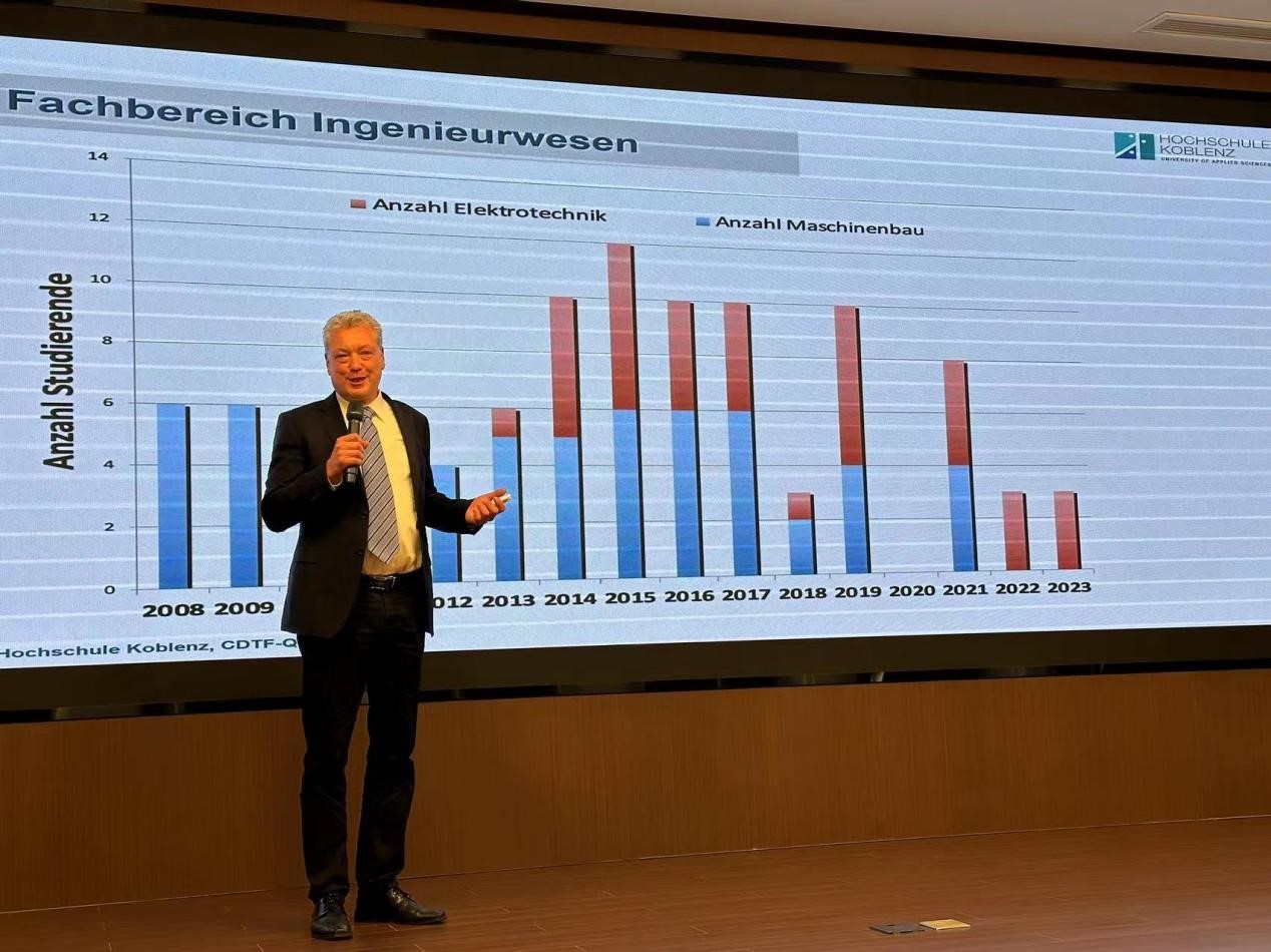 科布伦茨应用科技大学代表潘道夫教授就公司简介、校区分布、专业设置、录取选拔条件及赴德学习模式等进行了详细讲解。他表示,两校自2007年便开展合作,双方交流密切,科布伦茨应用科技大学已培养了近200位来自伟德国际VICTOR1946的优秀学子,绝大多数员工在德继续攻读硕士研究生,在德发展良好。今年公司将为中方员工开设强化语言班、一对一帮助和实习岗位及就业技能培训等,希望能为中德两国社会和工业界培养更多掌握实用技术的专门人才。