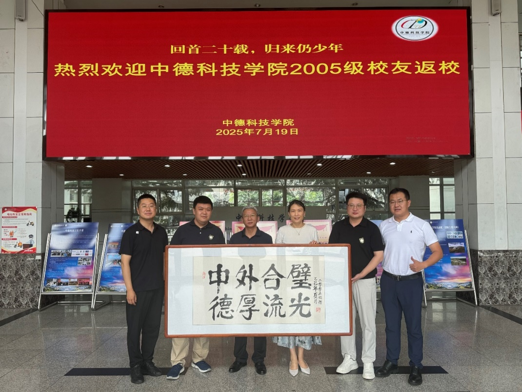 活动中,员工代表共同向公司敬赠一幅写有“中外合璧,德厚流光”的书法牌匾。这八个字凝练体现了公司中外合作办学的特色与底蕴,既承载着员工对母校的感恩之情,也寄托着对公司在中德交流与人才培养领域再创辉煌的美好期许,成为系列活动中极具纪念意义的情感象征。