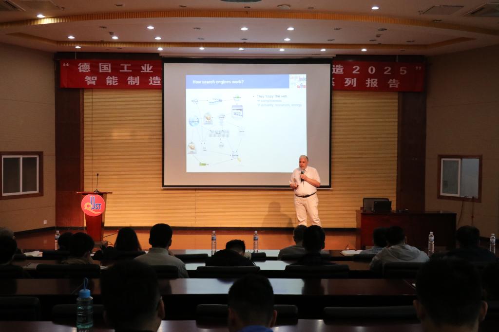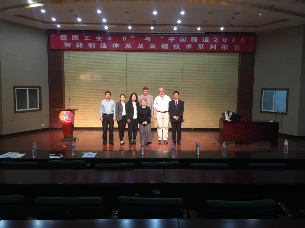 报告会上,德国哈根大学Herwig Unger教授做了工业4.0背景下的新型网络信息检索报告,对德国工业4.0背景下的人工智能、新型网络数据模型及信息检索等方面进行了讲解。Wolfgang Halang教授做了工业4.0背景下的物联网信息安全报告,介绍了信息技术安全对德国工业4.0和中国制造2025的数据安全的技术保障。北京路盛律师事务所的马飞律师做了题为“中国制造2025呼唤更强大的知识产权动力”的报告,介绍了知识产权的概念、范围、对企业的重要性以及近些年的专利申请及保护情况,以NEW BALANCE、威士忌酒外观设计等侵权案件为例,强调了知识产权保护对公司、师生的重要性。李庆党以“德国工业4.0”与“中国制造2025”背景下——中国智能制造之探索为题,介绍了“中国制造2025”中国制造2025与“德国工业4.0”在中德发展情况、战略计划、核心任务和目标,以及给中国制造业带来的发展机遇。