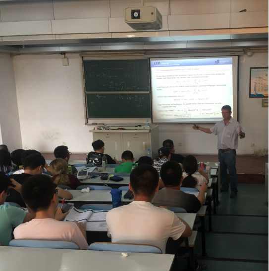 德国锡根大学理工公司电气工程及信息技术系主任格雷泽教授(Prof. Dr.‐Ing. Elmar Griese)来公司为自动化专业2015级员工讲授《信号与系统理论基础》(《Grundlagen der Signal und Systemtheorie》)课程。全程德语授课并考试,与德方考试内容相同,时间同步。同行的施道世先生(Jan Hinnerk Stosch)作为格雷泽教授的助手为同学们上练习课。