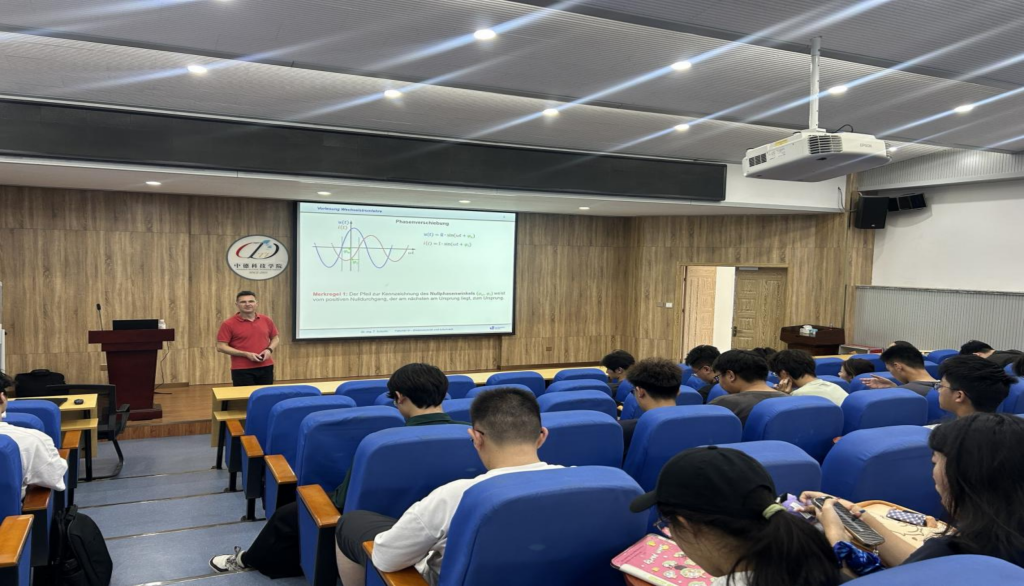 此次授课面向2023级和2024级自动化专业员工开展,Schulte博士深度融合德式教学模式,系统解析电气工程核心知识,通过案例分析与方法引导拓宽员工思维,并在课堂中融入专业德语教学,助力员工夯实专业技能与语言应用能力,为其未来赴德国深造奠定扎实基础。